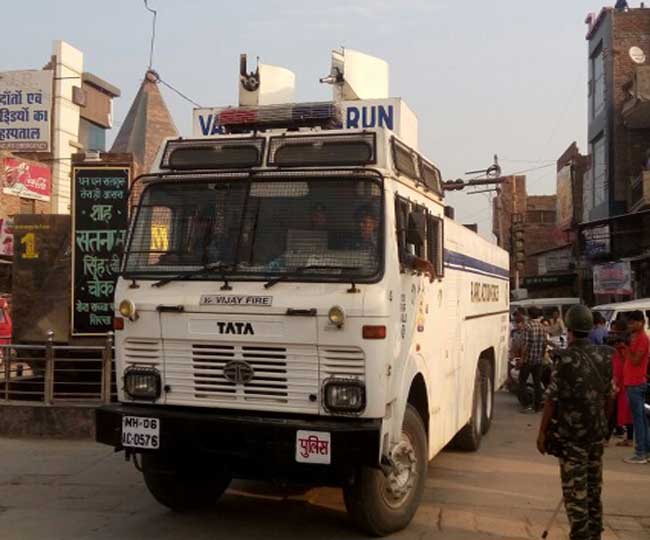 सिरसा में डेरा सच्‍चा सौदा में सर्च अपरेशन के लिए जाते पुलिस के वाहन।