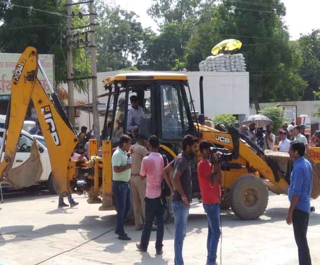 डेरा सच्‍चा सौदा के अंदर ले जाई जा रही जेसीबी।