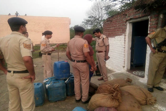 नूरपुर में पुलिस की दबिश हजारों लीटर देशी शराब बरामद