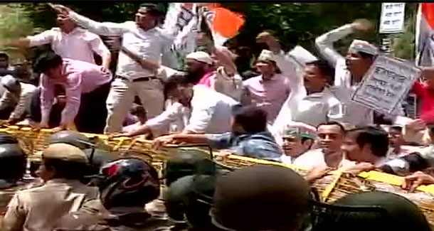 'आप' के कानून मंत्री के खिलाफ कांग्रेस का प्रदर्शन
