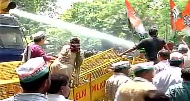 स्थिति को काबू करने के लिए पुलिस को कांग्रेस कार्यकर्ताओं के ऊपर पानी की बौछार करनी पड़ी।