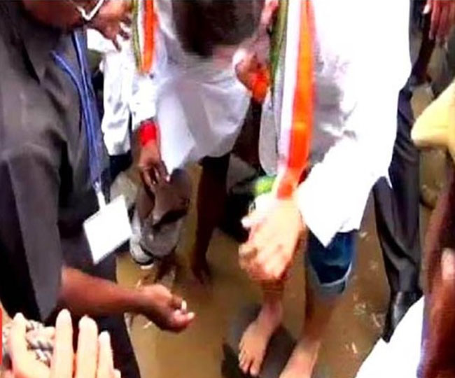 ताज़ा मामला झारखंड का है। दरअसल, एक वीडियो वायरल हुआ है जिसमें रघुवर दास एक थाली में खड़े दिख रहे हैं और महिलाएं उनका पैर धो रहीं हैं। इस वीडियो के वायरल होने के बाद जहां विपक्षी दलों ने इसे महिलाओं का अपमान बताया है तो वहीं दूसरी तरफ भाजपा का कहना है इसमें कुछ भी गलत नहीं है। इसके पीछे भाजपा की दलील ये है कि पैर धुलाई एक पारंपरिक स्वागत का हिस्सा था जो आदिवासी संस्कृति में बेहद आम बात है। यहां पर मुख्यमंत्री रघुवर दास गुरु पूर्णिमा के मौके पर एक कार्यक्रम में शिरकत करने गए थे। रघुवर दास पहले ऐसे नेता नहीं हैं जिनके साथ यह विवाद जुड़ा हो इससे पहले भी इस तरह की चीजें कुछ अन्य नेताओं के साथ हो चुकी हैं।