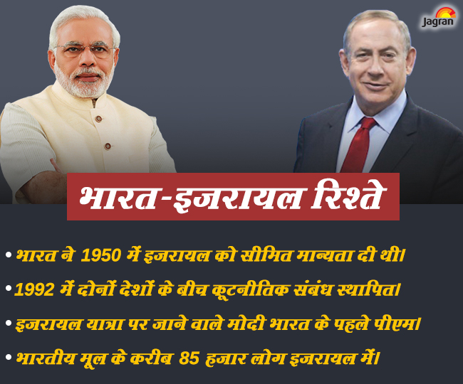 दोनों देशों के बीच 25 साल पहले 1992 में राजनयिक संबंधों की स्थापना हुई। कृषि से लेकर जल प्रबंधन, विज्ञान व तकनीक और शिक्षा के क्षेत्र में दोनों देश एक दूसरे को सहयोग करते आए हैं। सैन्य मामलों में भारत और इजरायल के बीच साझेदारी है। ऐसे में उम्मीद की जा रही है कि मोदी की यह यात्रा दोनों देशों के बीच संबंधों को और मजबूत करेगी।