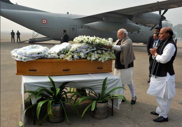 प्रधानमंत्री नरेंद्र मोदी भी उनके अंतिम दर्शन तथा श्रद्धांजलि देने के लिए पालम एयरपोर्ट पहुंचे थे।