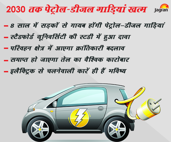 स्टैंडफोर्ड यूनिवर्सिटी की तरफ से प्रकाशित स्टडी के मुताबिक जीवाश्म ईंधन से चलने वाली कारें अगले आठ सालों के अंदर पूरी तरह से ख़त्म हो जाएंगी और उसके बाद जो लोग कारें खरीदना चाहेंगे उनके पास इलैक्ट्रिक गाड़ियां खरीदने के अलावा दूसरा और कोई विकल्प नहीं होगा जो एक समान तकनीक पर ही चलेंगी।