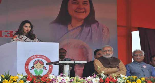 प्रख्यात अभिनेत्री माधुरी दीक्षित ने लड़कियों की शिक्षित करने पर जोर देते हुए कहा कि बेटे-बेटियों में भेदभाव न करें। उन्होंने कहा कि लड़कियों की गिरती संख्या खतरे की निशानी है। इसे रोकना होगा। माधुरी दीक्षित राष्ट्रीय योजना 'बेटी बचाओ, बेटी पढ़ाओ ' की शुरुआत के अवसर पर प्रधानमंत्री की मौजूदगी में सभा को संबोधित कर रही थीं। उन्होंने कहा कि उनके माता-पिता ने कभी उन्हें भाइयों से कम नहीं समझा। उम्मीद है कि दूसरे घरों में भी ऐसा ही होगा।