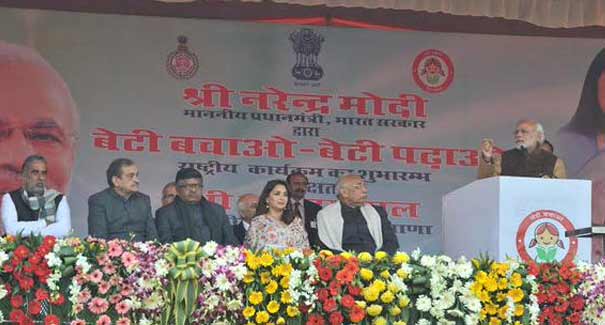 प्रधानमंत्री नरेंद्र मोदी ने समाज में लड़कियों की गिरती संख्या, भ्रूण हत्या पर चिंता जताते हुए कहा कि बेटा-बेटी एक समान हमारा मंत्र होना चाहिए। भ्रूण हत्या समाज के प्रति द्रोह है। उन्होंने कहा कि पानीपत की धरती से एक बड़ी जिम्मेदारी शुरू की जा रही है। यह समय आरोप-प्रत्यारोप