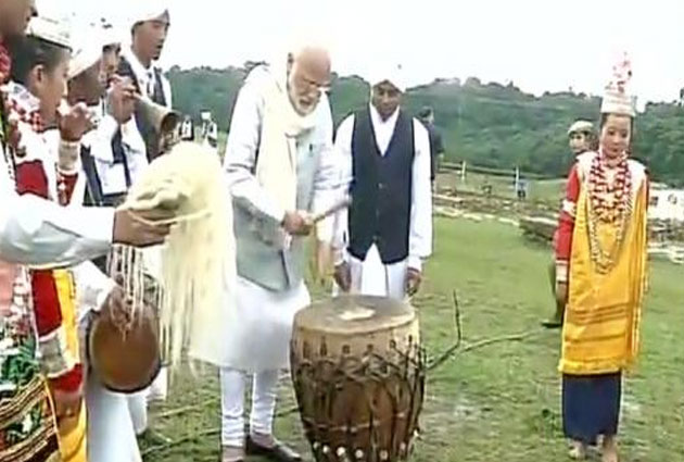 मेघालय में मोदीः आदिवासियों के कार्यक्रम में शामिल हुए पीएम, नगाड़ा भी बजाया