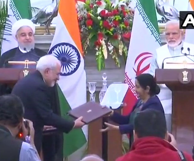 पीएम मोदी और इरानी राष्ट्रपति डॉ हसन रुहानी ने संयुक्त रुप से संबोधन दिया। इस दौरान भारत और इरान ने दोनों देशों के शीर्ष नेताओं की उपस्थिति में एमओयू पर हस्ताक्षर किए। अपने संबोधन में पीएम मोदी ने रुहानी से कहा- मैं 2016 में तेहरान गया था और अब आप यहां आए हैं। इससे हमारे रिश्ते और मजबूत और गहरे होते हैं।