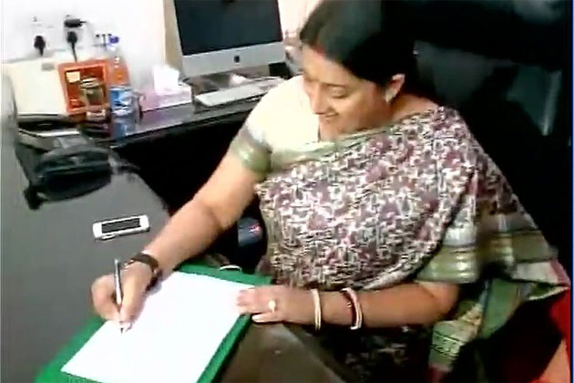 स्मृति इरानी अाज कपड़ा मंत्रालय का पदभार भी ग्रहण की।