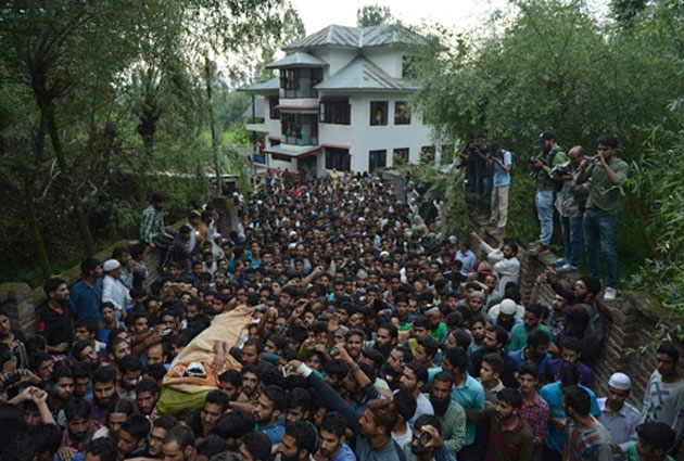 जनाजे में शामिल हुए हजारों लोगों ने हिजबुल मुजाहिद्दीन के आतंकी के लिए आखिरी दुआ मांगी। बुरहान वानी की मौत के बाद फैली हिंसा के दौरान कुलगाम में 8 प्रदर्शनकारियों की मौत हो गई ।