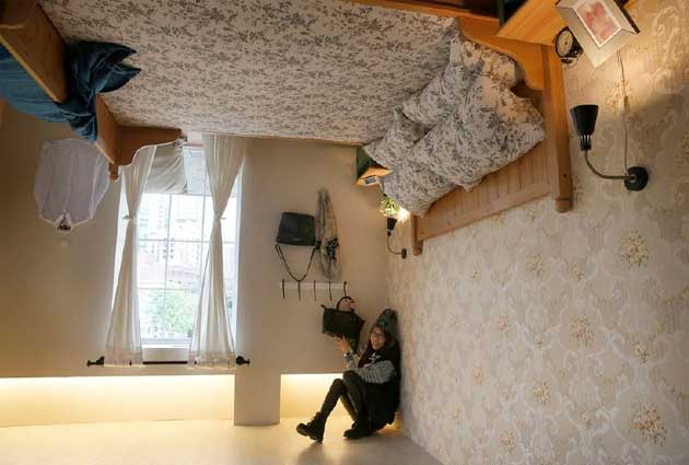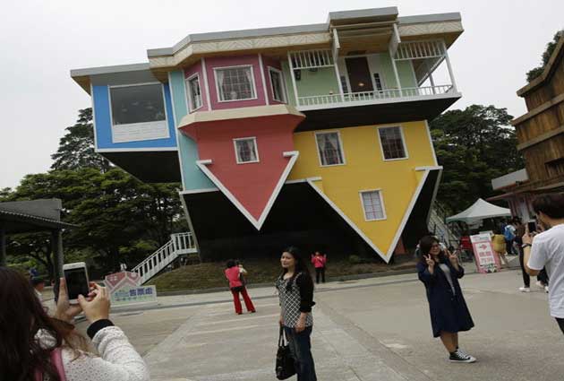 ताइवान के हुआसान क्रिएटिव पार्क में आर्किटेक्ट्स के एक समूह ने उल्टा-पुल्टा घर बनाकर पर्यटकों को चकित कर दिया। घर को पूरी तरह उल्टा बनाया गया। घर के बाहरी स्वरूप से लेकर अंदर की हर चीज आपको अहसास कराएगी कि आप छत से उल्टे लटके हुए हैं।