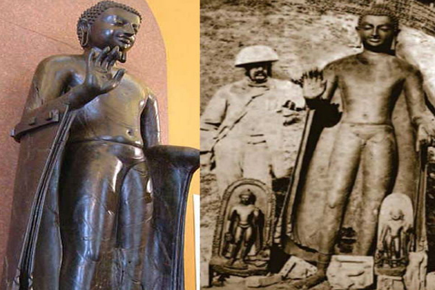 यह मूर्ति गुप्त-पाल शासनकाल यानी 500 से 700 ईसवी के समय की है। भागलपुर के पास रेलवे निर्माण कार्य की शुरुआत में खुदाई के दौरान यह मूर्ति मिली थी। आधे क्विंटल से ज्यादा वजनी यह मूर्ति अशुद्ध तांबे से बनी है। इसमें गौतम बुद्ध खड़े हैं और उनका एक हाथ अभयमुद्रा में हैं। इसे बर्मिंघम के उद्योगपति सैम्यूएल थॉर्टन ने तब 200 पौंड में खरीदा था और फिर इसे बर्मिंघम म्यूजियम में रखवा दिया था।