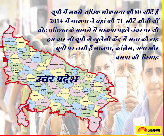 उत्तर प्रदेश लोक सभा चुनाव में हर बार काफी अहम भूमिका निभाता रहा है। इस बार भी वह इसी भूमिका में दिखाई देने वाला है। दरअसल उत्तर प्रदेश में लोक सभा की 80 सीटें हैं जो देश भर के राज्यों में मौजूद सीटों में से सबसे अधिक हैं। यही वजह है कि कांग्रेस और भाजपा का असली जोर यहां पर ही होता है। पिछली बार मोदी के नेतृत्व में लड़े गए चुनाव में यहां पर भाजपा ने अन्य दलों का सूपड़ा साफ कर दिया था। इस बार भी भाजपा उसी तरह से मैदान में उतरने की तैयारी कर चुकी है। पिछली बार यहां से भाजपा को कुल मत प्रतिशत में से 42 फीसद से अधिक मत मिले थे। वहीं दूसरे नंबर पर सपा रही थी जिसको 22 फीसद से अधिक और तीसरे नंबर पर बसपा 19 फीसद से अधिक और चौथे नंबर पर कांग्रेस रही थी जिसे महज साढ़े सात फीसद मत मिले थे। भाजपा के लिए जहां इस बार उत्तर प्रदेश में पिछली बार मिली सीटों को दोबारा पाने की कवायद सबसे बड़ी है वहीं कांग्रेस समेत बसपा और सपा के लिए अपनी खोई हुई जमीन पाने की कवायद है। लिहाजा यह कहना गलत नहीं होगा कि हर बार की ही तरह इस बार भी केंद्र की सत्ता की राह उत्तर प्रदेश से होकर ही गुजरेगी।