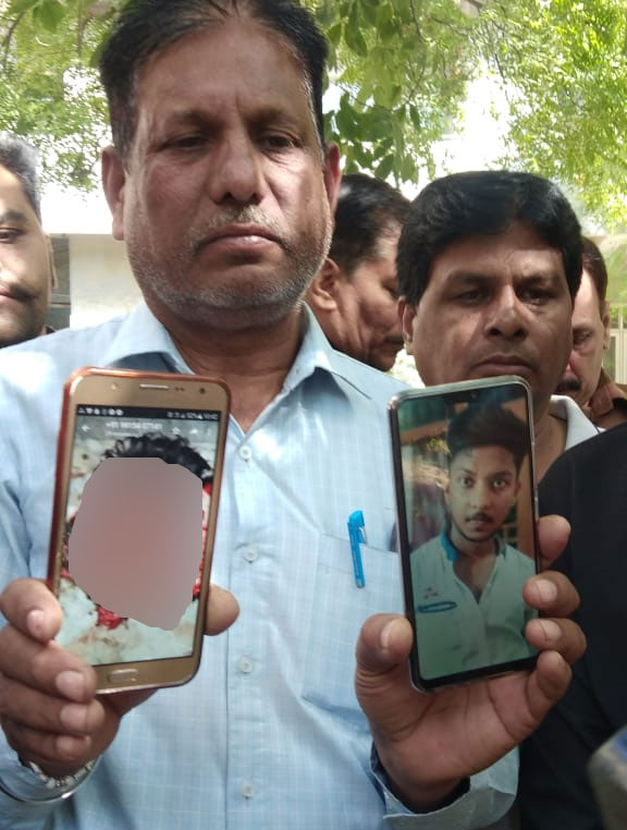 मनीष की फाइल फोटो व रेलवे ट्रैक से बरामद हुआ सिर दिखाते हुए उसके चाचा।