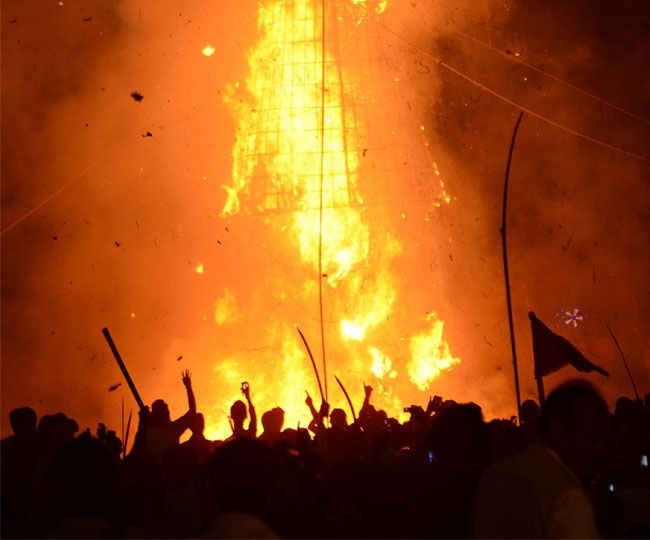 19 अक्टूबर 2018 को यूं देख रहे थे लोग रावण दहन।