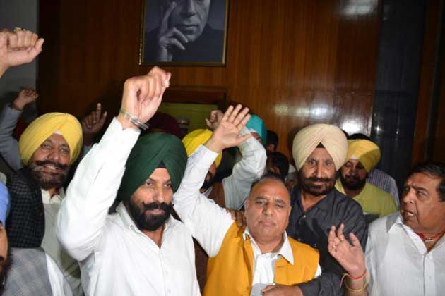 पंजाब विधानसभा के बाहर नारेबाजी करते इनेलो विधायक।