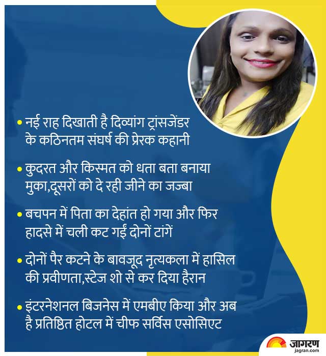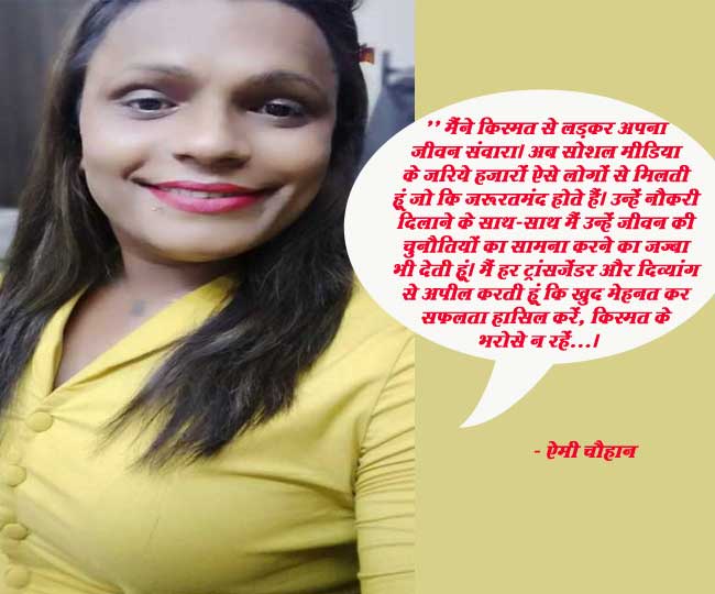 चंडीगढ़, [सुमेश ठाकुर]। कुदरत ने नाइंसाफी की तो किस्मत ने कदम-कदम पर जमकर धोखा दिया। ...लेकिन ऐमी ने हार नहीं मानी। कुदरत और किस्मत को धता बता आज वह अपना मुकाम पा चुकी है। चंडीगढ़ निवासी दिव्यांग ट्रांसजेंडर ऐमी चौहान के कठिनतम संघर्ष और निर्णायक सफलता की यह प्रेरक कहानी हर किसी को जीने के हौसले से भर सकती है।