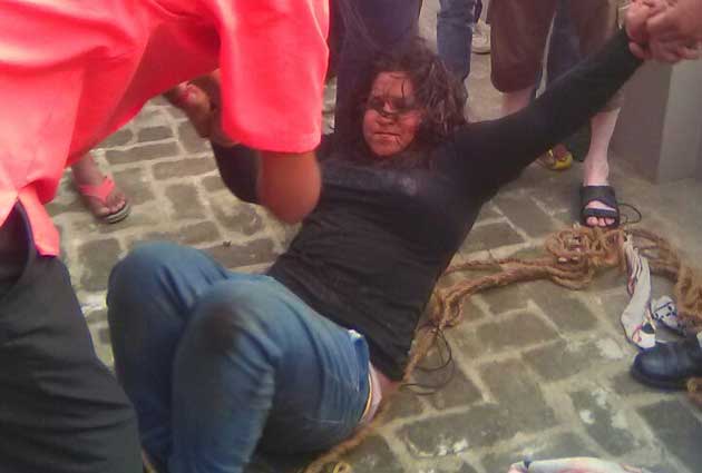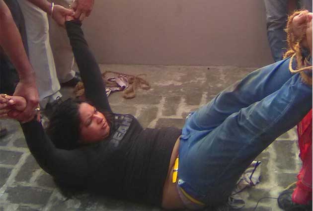 इसके बाद वह छत पर चढ़ गई और सीढिय़ों का दरवाजा ऊपर से बंद कर लिया। घबराकर उसने शोर मचाया। पड़ोसियों ने किसी तरह से छत पर चढ़कर युवती को घेरा। लोगों को वह मारने दौड़ रही थी। तुरंत पुलिस को सूचित किया गया। इस बीच लोगों ने युवती को बांध दिया। लाख पूछने पर उसने अपना नाम नहीं बता सकी। वह कुछ बोलती नहीं थी। जब कोई उसके पास जाता था तो वह मारने के लिए दौड़ती थी।
