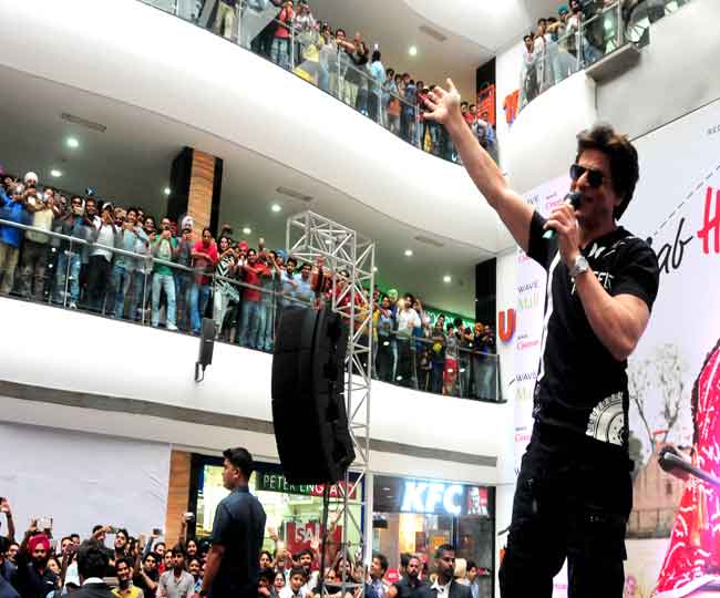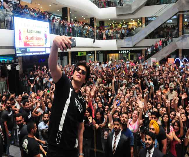 लुधियाना के एक मॉल में प्रशंसकों के बीच किंग खान।