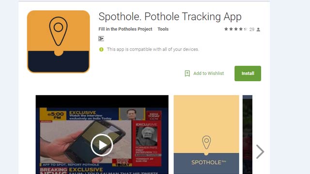 इस एप के जरिए आम जनता अपने शहर के potholes की रिपोर्टिंग और ट्रैकिंग कर सकती है। इसके लिए उन्हें केवल 3 स्टेप्स फॉलो करने होंगे। पहले उन्हें उस जगह पर जाना होगा जहां pothole है। फिर उसकी फोटो खींचनी होगी और उसकी रिपोर्ट करनी होगी। इस रिपोर्ट को संबंधित अधिकारियों को भेजा जाएगा जिससे वो इस मामले पर एक्शन ले पाएंगे। इसे गूगल प्ले स्टोर से डाउनलोड किया जा सकता है।