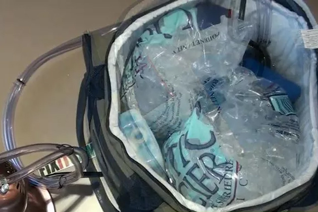 5. अब आपको एक वाटर बैग तैयार करना है। उस बैग में पंप, बर्फ और पानी डाल दें।