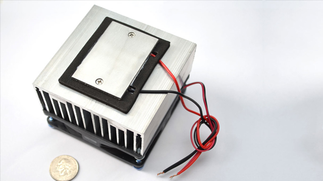 4. फिर आपको पेल्टियर यूनिट को हीटसिंक यूनिट के ऊपर चिपकाना है। बेहतर होगा अगर आप हीटसिंक पेस्ट पहले इसमें लगा दें। ये मशीन को ग्रिप के साथ-साथ सपोर्ट भी देगा।
