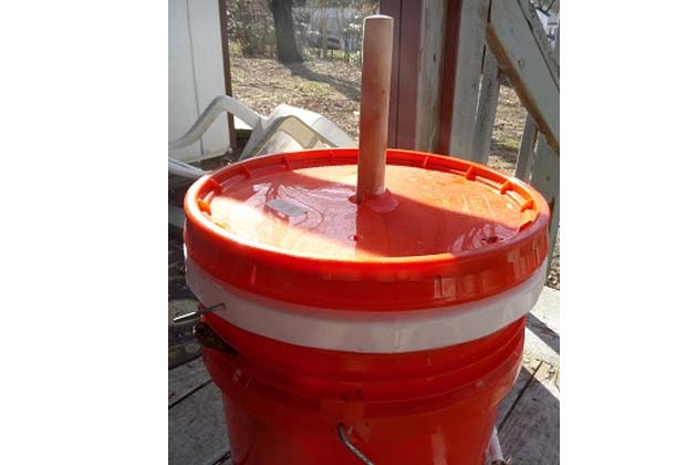4. अब सक्शन कप को बकेट के ढक्कन (जहां आपने छेद किया है) में फिट कर दें।