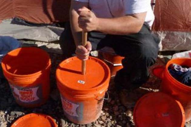 1. सबसे पहले एक बकेट लीजिए और उसके नीचे कुछ छेद कीजिए। ये छेद बकेट से पानी को निकालने में मदद करेंगे। इसके साथ ही सक्शन कप में भी कुछ छेद करें।