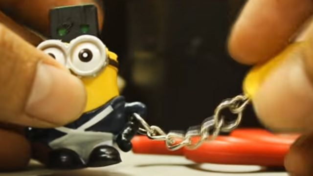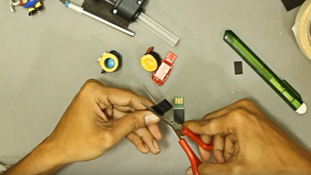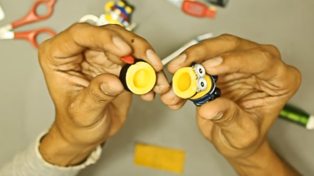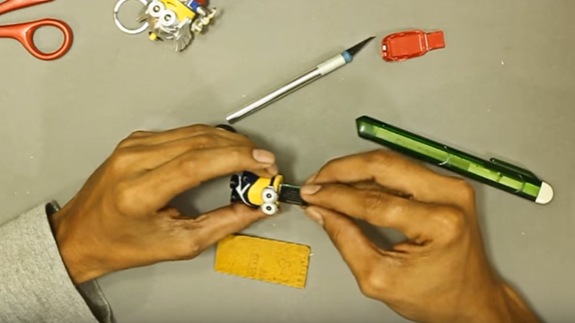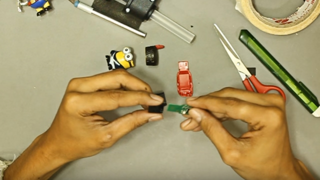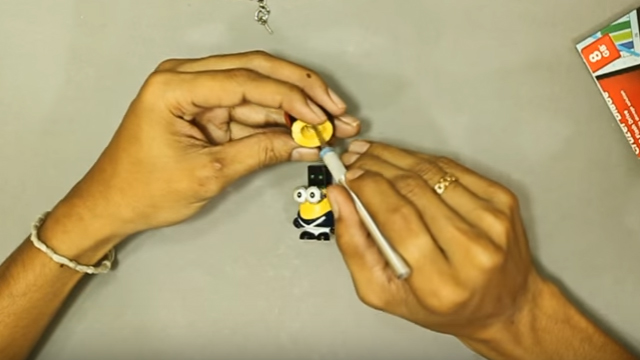 5. फिर पेनड्राइव तो मिनियोन के निचले हिस्से में फिक्स कर दें।