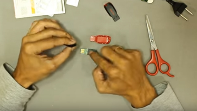2. सबसे पहले आप पेनड्राइव को खोलकर उसका बीच वाला पार्ट अलग करें।