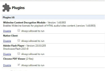 ज्यादा प्लगइन्स भी स्पीड पर काफी असर डालते हैं। इन्हें हटाने के लिए एड्रेस बार में chrome://plugins/in टाइप करें। यहां से आप अपने मुताबिक प्लंगइन को ऑफ कर सकते हैं।