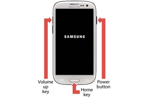 2. इसके बाद फोन के अप वॉल्यूम बटन, होम बटन और पावर बटन को एक साथ प्रेस करें।