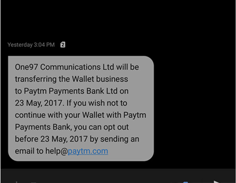 आपको बता दें कि पेटीएम अपने वॉलेट का पूरा कामकाज PPBL को ट्रांसफर कर देगा। वहीं, कंपनी ने यह भी कहा है कि अगर कोई यूजर अपना वॉलेट पेमेंट बैंक में ट्रांसफर नहीं करना चाहता है तो उसे पेटीएम बैंक को सूचित करना होगा। इसके लिए help@paytm.com पर मेल किया जा सकता है। यूजर को यह सूचना कंपनी को 23 मई से पहले देनी होगी। इसकी जानकारी अगर यूजर ने ऐसा नहीं किया तो उसके वॉलेट के पैसे को उसके बैंक अकाउंट में ट्रांसफर कर दिया जाएगा।