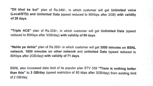 बीएसएनएल ने 333 से 395 रुपये के बीच में तीन नए प्लान जारी किए हैं
