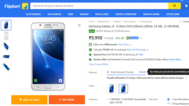 फ्लिपकार्ट बिग 10 सेल, सैमसंग स्मार्टफोन महज 990 रुपये में खरीदने का शानदार मौका