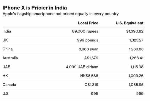 अमेरिका में आईफोन X की कीमत 999 डॉलर रखी गई है। इस समय 1 डॉलर की कीमत करीब 64 रुपए है। इस लिहाज से करीब 64000 रुपए हुई। लेकिन तमाम ड्यूटी और टैक्स लगने के बाद भारत में आईफोन X की कीमत करीब 89000 होने की उम्मीद है। इस हिसाब से अमेरिका के मुकाबले भारत में आईफोन X करीब 39 फीसद महंगा बिकेगा।