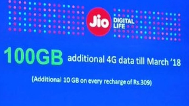 नई दिल्ली (जेएनएन)। देश की टेलिकॉम कंपनी रिलायंस जियो ने यूजर्स के लिए एक और धमाकेदार ऑफर लॉन्च किया है। यह एक डायरेक्ट ऑफर है, जिसके तहत एलजी जी6 के साथ यूजर्स को 100 जीबी अतिरिक्त डाटा दिया जाएगा। यह ऑफर मार्च 2018 तक उपलब्ध है। आपको बता दें कि अगर यूजर्स एलजी जी6 स्मार्टफोन खरीदते हैं और 309 रुपये का रिचार्ज कराते हैं तो उन्हें हर रिचार्ज पर 10 जीबी अतिरिक्त डाटा दिया जाएगा। वहीं, इससे पहले जियो ने ऐसा ही एक डबल डाटा ऑफर गैलेक्सी एस8 के साथ भी दिया था। इसके तहत 28 GB + 28 GB डाटा एक महीने के लिए 309 रुपये के रीचार्ज पर दिया जा रहा था।