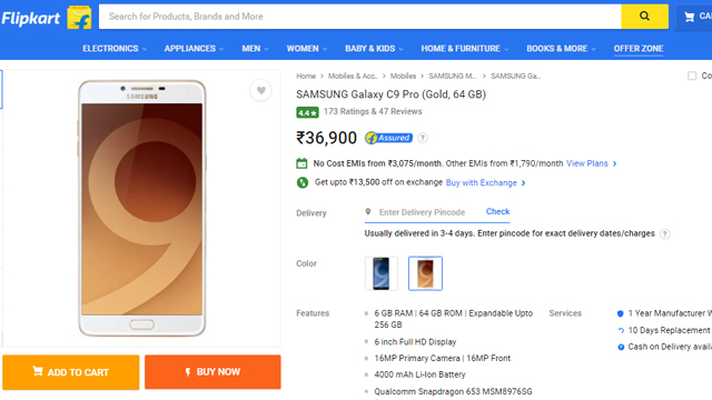सैमसंग गैलेक्सी सी9 प्रो को महज 1790 रुपये प्रति महीना देकर खरीदा जा सकता है