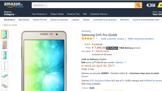 ई-कॉमर्स कंपनी अमेजन इंडिया सैमसंग ऑन5 प्रो और सैमसंग ऑन7 प्रो स्मार्टफोन पर डिस्काउंट दे रही है