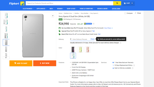 सोनी एक्सपीरिया एक्स की कीमत में 14,000 रुपये की कटौती की गई है