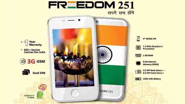 4 इंच की क्यूएचडी आईपीएस डिस्पले के साथ ये फोन डुअल सिम सपोर्ट करता है। इसके साथ ही ये फोन एंड्रायड 5.1 लॉलीपॉप पर काम करने वाला ये स्मार्टफोन 3जी नेटवर्क पर काम करता है। Freedom 251 1.3 गीगाहर्ट्ज क्वाडकोर प्रोसेसर और 1 जीबी रैम से लैस है। 8 जीबी की इंटरनल मेमोरी दी गई है जिसे 32 जीबी तक के माइक्रोएसडी कार्ड से बढ़ाया जा सकता है। इसके साथ ही सोशल मीडिया जैसे व्हाट्सएप, फेसबुक, ट्विटर जैसी एप्स को आसानी से चलाया जा सकता है। इस फोन में 3.2 एमपी रियर कैमरा और 0.3 एमपी फ्रंट कैमरा दिया गया है। 1450 एमएएच की बैटरी के साथ ये फोन 1 साल की वारंटी के साथ आता है।