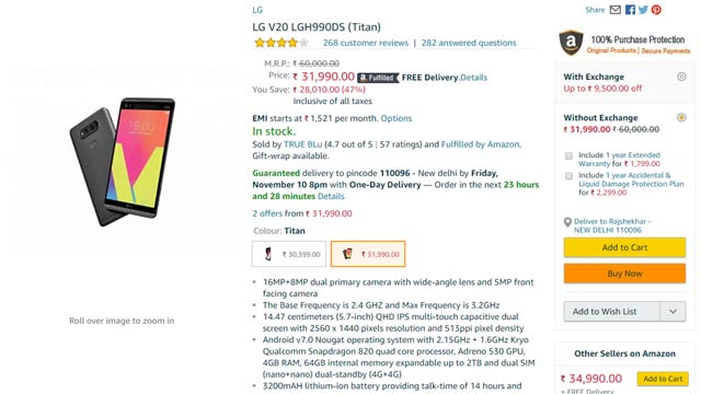 LG के इस फ्लैगशिप स्मार्टफोन को पिछले साल दिसंबर में लॉन्च किया गया था। कंपनी ने इस स्मार्टफोन को 54,999 रुपये में लॉन्च किया था। लॉन्च से अब तक इस फोन की कीमत में करीब 25,230 रुपये की कटौती हो चुकी है। यह फोन करीब 30,000 रुपये में उपलब्ध है।