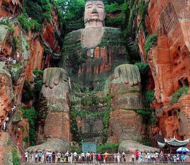 चीन के लेशान में पत्थर पर बनी भगवान बुद्ध की मूर्ति 233 फीट (71 मीटर) ऊंची है। यह मूर्ति शिजुओ की पहाड़ी पर आठवीं शताब्दी में तैयार की गई थी। ऐसा लगता है, जैसे यह मूर्ति तीन नदियों को देख रही है। इसका चेहरा माउंट एमेई की तरफ है। माउंट एमेई बौद्धों का पवित्र धार्मिक स्थल है। इसके निर्माण के समय यहां एक 13 मंजिला स्ट्रक्चर लकडिय़ों से बनाया गया था। इसे सोने से मढ़ा गया था। युआन राजवंश के कार्यकाल में मंगोल आक्रमणकारियों ने इसे नष्ट कर दिया था।