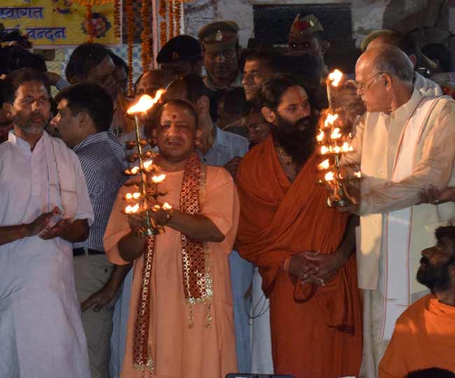 मुख्यमंत्री योगी आदित्यनाथ ने मत्यगयेंद्र मंदिर में पूजा-अचर्ना की और संतों की हर मांग पर उनका तथास्तु होता रहा।