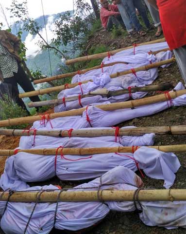 हादसा इतना भयानक था कि वाहन के परखच्चे उड़ गए, खाई में सवारियां कई मीटर दूर छिटक गईं। आज तड़के प्रशासन के पहुंचने से पहले ग्रामीणों ने खाई से शव और घायलों को बाहर निकाल लिया था। प्रशासनिक टीम के देरी से पहुंचने पर ग्रामीणों ने हंगामा भी किया।