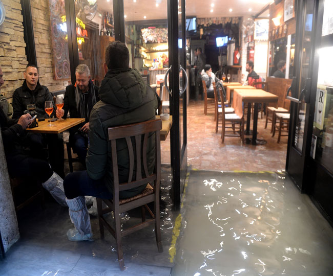 यहां के रेस्तरां भी इससे अछूते नहीं रहे हैं। लेकिन इसके बाद भी यहां के लोगों के चेहरे पर कोई शिकन नहीं है। यह हाल तब है जब वेनिस के लोगों ने इस तरह की बाढ़ को दशकों बाद देखा है।
