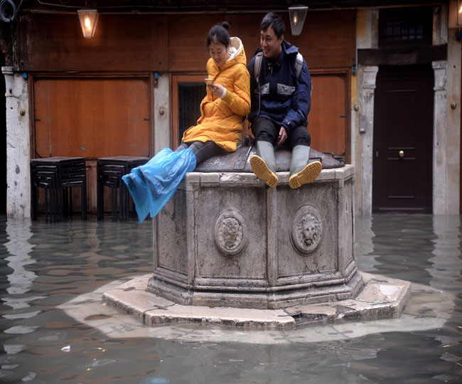 बाढ़ की वजह से वेनिस बीते कुछ दिनों से पानी-पानी हो गया है। इसके बाद भी यहां की खूबसूरती और यहां के लोगों की मौज-मस्ती कम नहीं हुई है।