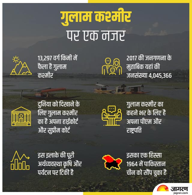 आगे बढ़ने से पहले आपको गुलाम कश्मीर के बारे में कुछ और जानकारी भी दे देते हैं। 13,297 वर्ग किमी में फैले गुलाम कश्मीर की जनसंख्या की बात करें तो 2017 के आंकड़ों के मुताबिक, यह 4,045,366 है। दुनिया को दिखाने के लिए गुलाम कश्मीर का अपना हाईकोर्ट और सुप्रीम कोर्ट भी है। इस इलाके की पूरी अर्थव्यवस्था कृषि और पर्यटन पर टिकी है। गिलगिट बाल्टिस्तान से लगते इसके एक इलाके को पाकिस्तान ने 1963 में चीन को सौंप दिया था। यह इलाका फिलहाल चीन की शिनजियांग उइगर प्रोविंस का हिस्सा है।