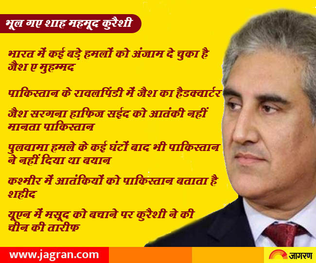 इतना ही नहीं कुरैशी अपना बयान देते समय यह भूल गए कि 14 फरवरी को जब पुलवामा में आतंकी हमला हुआ था उस वक्त पाकिस्तान की तरफ से इसकी निंदा करते हुए कोई बयान सामने नहीं आया था। वहीं सभी देशों ने इसकी जमकर निंदा की थी। काफी समय बाद विदेश मंत्रालय के प्रवक्ता को इसकी निंदा करने का वक्त मिला था। उस वक्त तक भी इमरान खान इस पर चुप थे। यह हमला भी मसूद के आतंकी संगठन जैश ने करवाया था। यह वही मसूद है जिसपर अमेरिका और फ्रांस ने अपने-अपने यहां पर प्रतिबंध लगाया है। वहीं यूरोपियन यूनियन भी अब यही कदम उठाने जा रही है। वहीं यूएन में उस पर प्रतिबंध को लेकर चीन हर बार की तरह इस बार भी रोड़ा अड़ा चुका है।